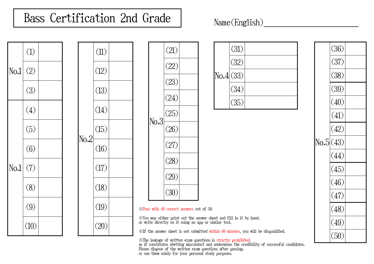 【Answer Sheet】Bass Certification 2nd Grade(Professional)