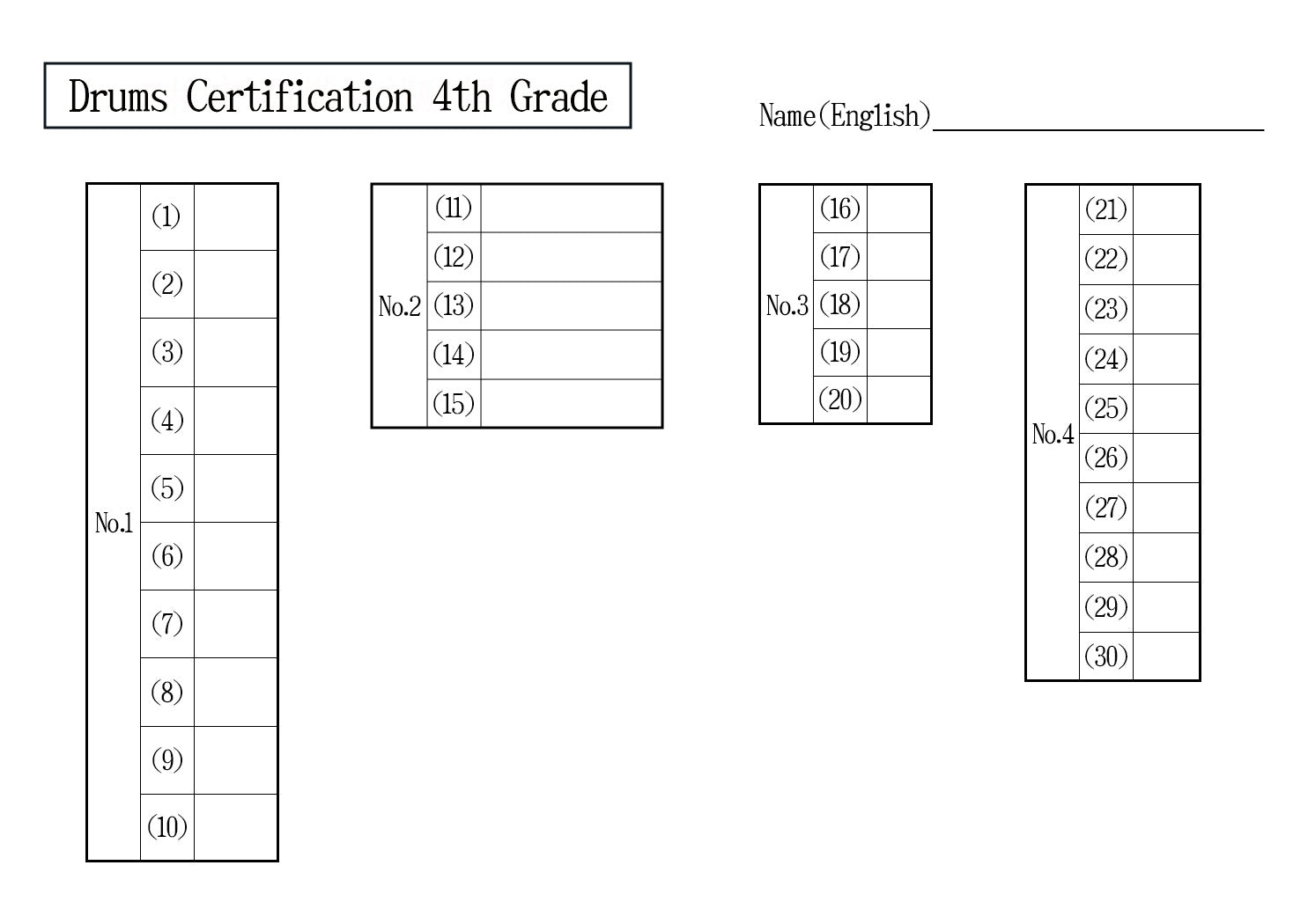 Drums Certification Mock Exam 4th Grade
